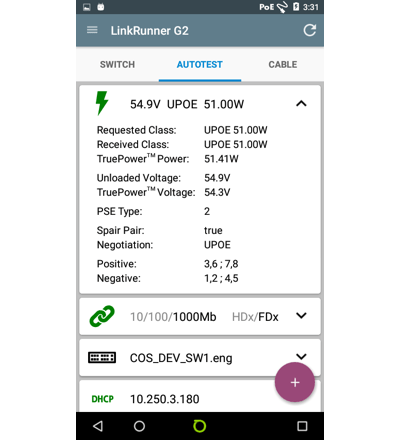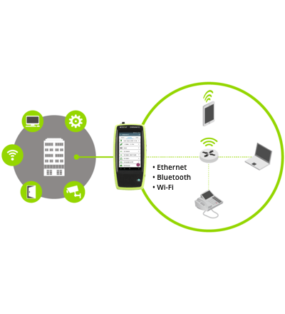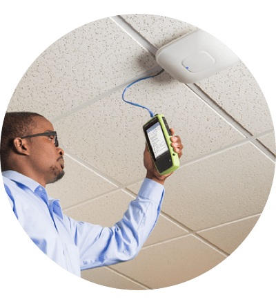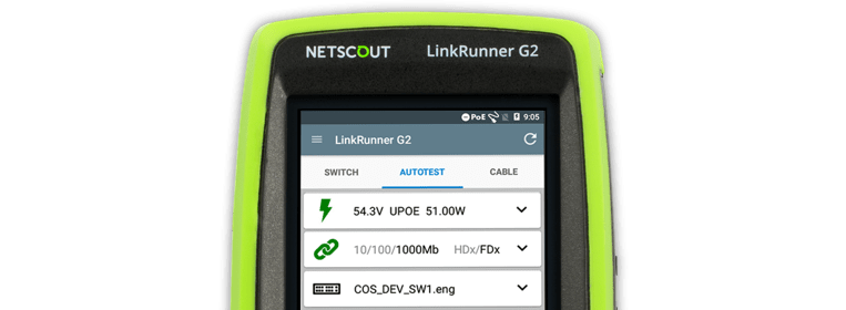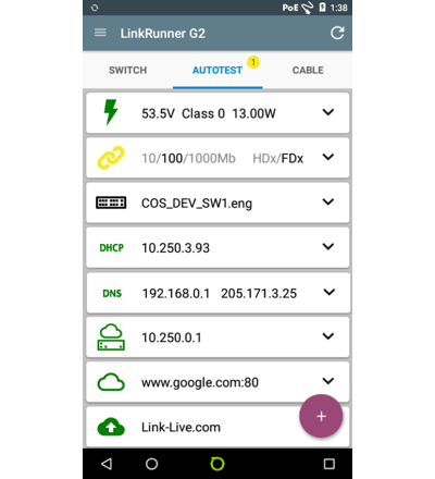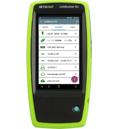 Just plug into the RJ-45 jack and the AutoTest will automatically begin. The AutoTest will complete the full set of validation tests for you to ensure all network services are configured correctly.