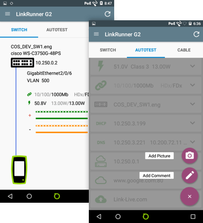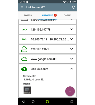 At the completion of the test, you can add a comment such as Jack location. You can even snap a picture of the jack, serial number or asset tag using the on-board camera.