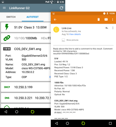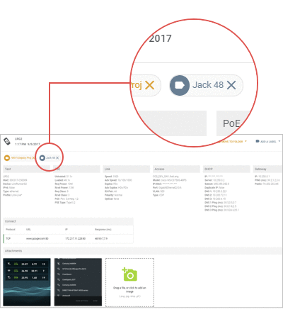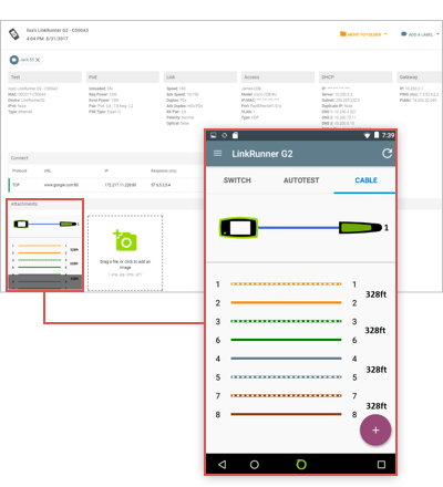 This information automatically uploads to Link-Live Cloud Service at the completion of each test, providing a quick and simple way to document the path between wall jack and switch/slot/port/VLAN for future troubleshooting or moves, adds and changes.