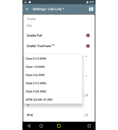 - Loaded PoE on all four pair at the edge RJ-45 jack